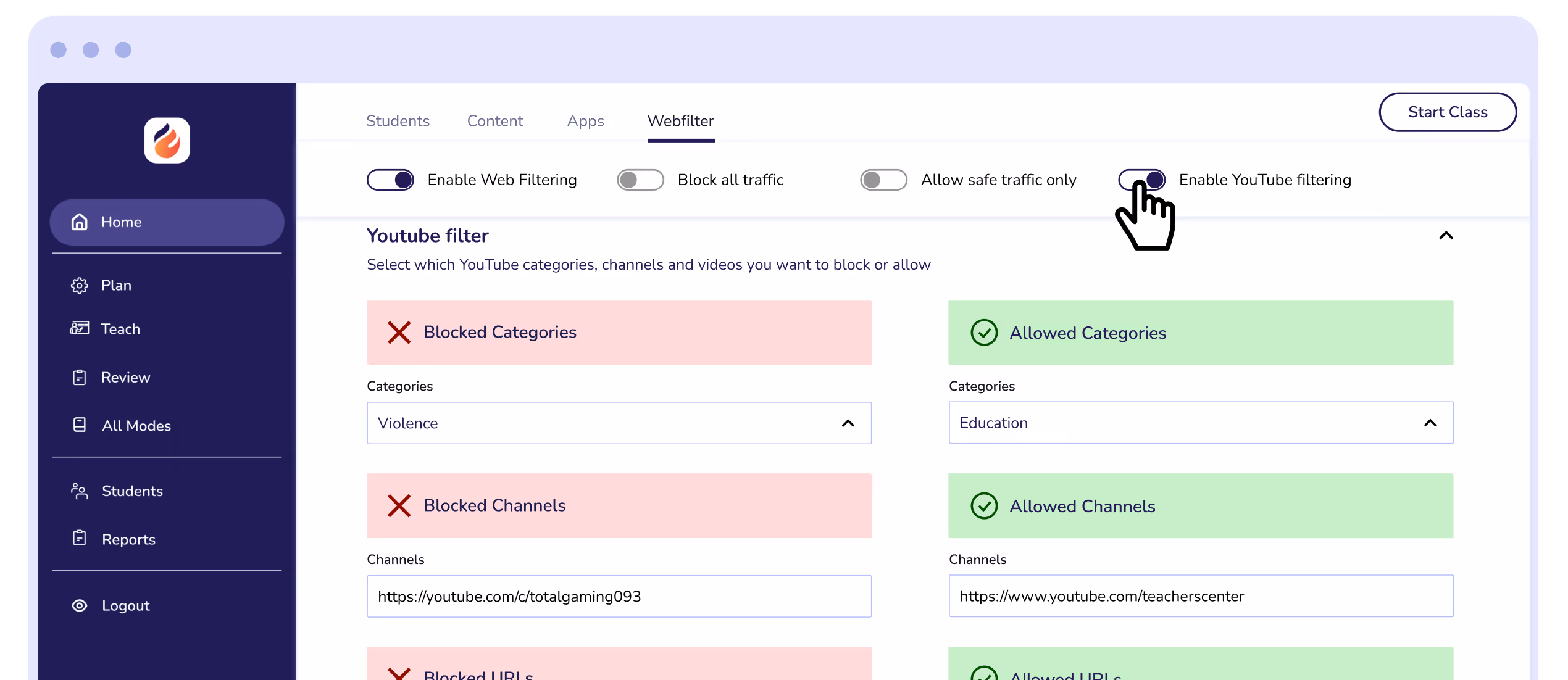 Keep YouTube focused on learning by restricting access to approved channels, categories, and videos, so students get the benefit of the platform without the distraction.